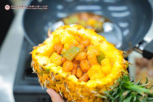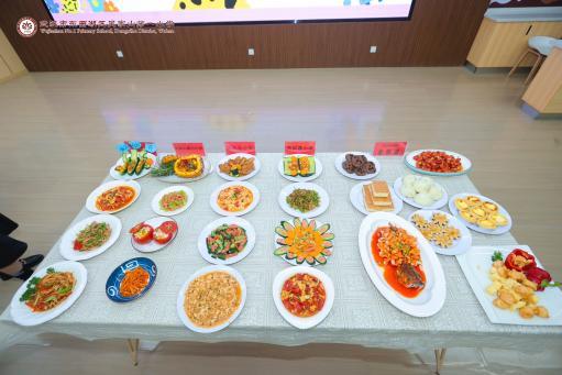 经过紧张而又充实的比拼,一道道色香味俱全的菜肴被端上展示台。既有西红柿炒鸡蛋、青椒肉丝、肉末豆腐等经典家常菜,色泽鲜艳,口感诱人;也有孩子们发挥创意制作的特色菜品,吴家山一小的“快乐Hihi舟”尤为吸睛,一艘翠绿的黄瓜船身满载彩椒丁、玉米笋、水晶虾仁,船舷上插着迷你彩旗,仿佛即将扬帆起航的“丰收之舟”,将“劳动创造快乐”的主题巧妙融入美食造型。可乐鸡翅的焦糖香、菠萝咕咾肉的酸甜香、时蔬小炒的清鲜香交织弥漫,评委与观众纷纷驻足拍照,观看现场直播的孩子们感叹着:“隔着屏幕都流口水!”