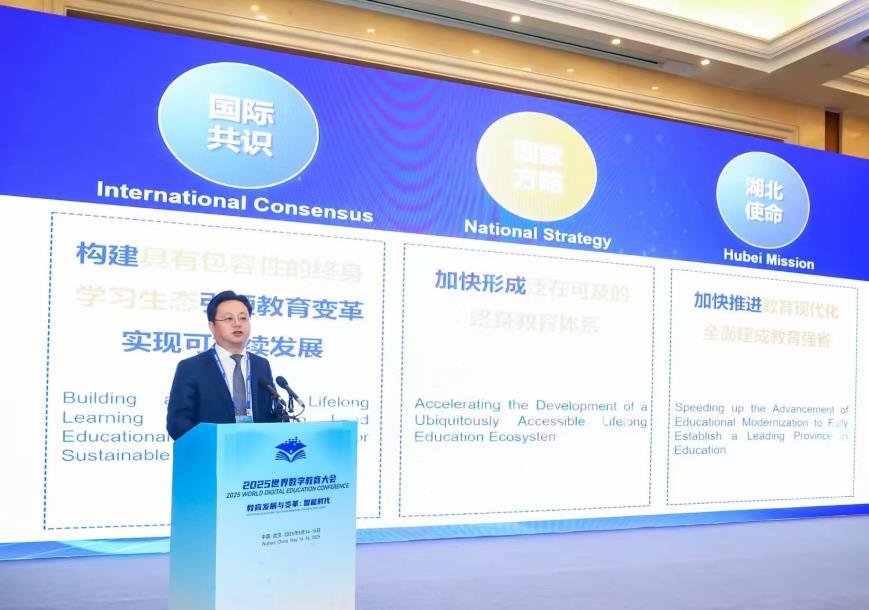 荷风送香,竹露滴清。5月16日,2025世界数字教育大会在武汉圆满落下帷幕。大会以“教育发展与变革:智能时代”为主题,吸引全球数十个国家和地区的教育部门负责人、国际组织代表、院校校长、师生及数字技术企业代表齐聚江城,共绘智能时代教育发展新蓝图。此次大会由教育部、中国联合国教科文组织全国委员会、湖北省人民政府共同主办,湖北开放大学作为大会终身教育现场观摩点和“数智赋能大规模个性化终身学习”平行会议的承办方,既充分展示了数字化建设办学成果,又为大会成功举办贡献了开大力量。