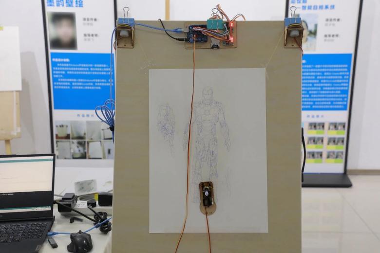 “墨韵壁绘”是智能工程学院孙博韬同学基于Arduino开发板精心设计的一款墙画机器人。该机器人系统以Arduino开发板作为核心“大脑”,可精准读取Gcode代码,并将代码中蕴含的绘画线段分拆成一个个具体的坐标点,凭这一功能,能在墙体上安全、精准、高效完成墙体绘画任务。