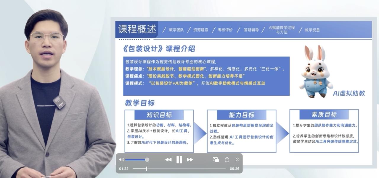 程雨庄老师的《包装设计》课程则立足绿色设计理念,融入智能建模、3D打印及数字化营销工具,打造“设计+技术+市场”三维联动的教学体系。课程通过真实企业项目驱动教学,助力学生掌握从创意构思到商业落地的全流程技能,充分体现了数智化转型对设计教育的革新价值。