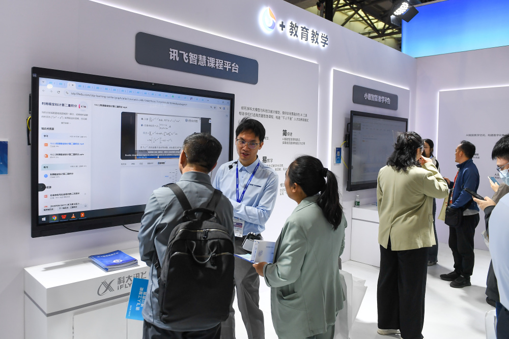 5月23日,观众在第63届高等教育博览会上了解智慧课程平台。新华社记者 张楠 摄