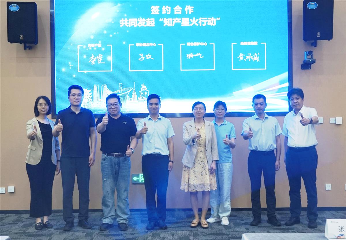 现场,在审协湖北中心办公室副主任张敏、湖北保护中心副主任何欣、武汉国家生物产业基地建设服务中心产业处副处长苗耘、湖北科投副总经理邵青的共同见证下,审协湖北中心、湖北保护中心、光谷产投及光谷生物投四方代表共同签署合作协议,标志着多方协作共同开启“知产星火行动”。
