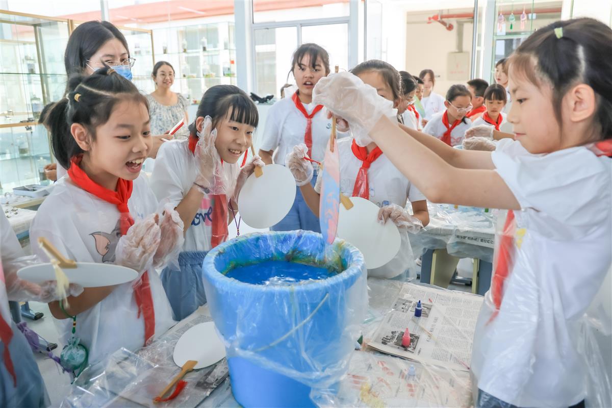 “我国自唐朝起就有‘端午赠扇’的习俗,亲友间会在端午互赠扇子,不仅为仲夏酷暑送去一缕清凉,更有着‘增美德、颂仁风’之寓意。”在尤园的介绍下,小同学们以漆为笔,以水作画,素雅的团扇在大家手中重新焕发生机,也被童心童趣赋予了与众不同的意义。