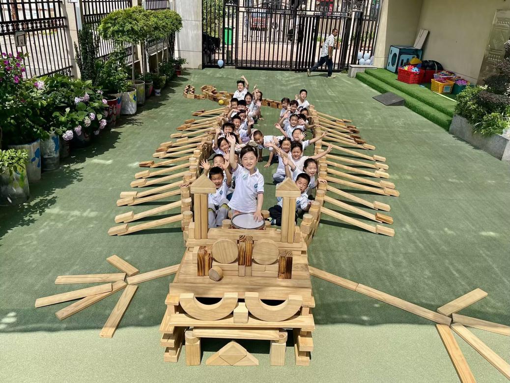 “老师快看!我们的龙舟开起来啦!”“我吹吹吹,我的龙舟一定划第一!”5月30日,武汉市青山区第一幼儿园绿地花园园内欢声笑语不断,一场融合六一儿童节与端午节特色的趣味水游戏活动精彩上演,全园幼儿在水的世界中尽情嬉戏,感受传统节日魅力,编织欢乐童年记忆。