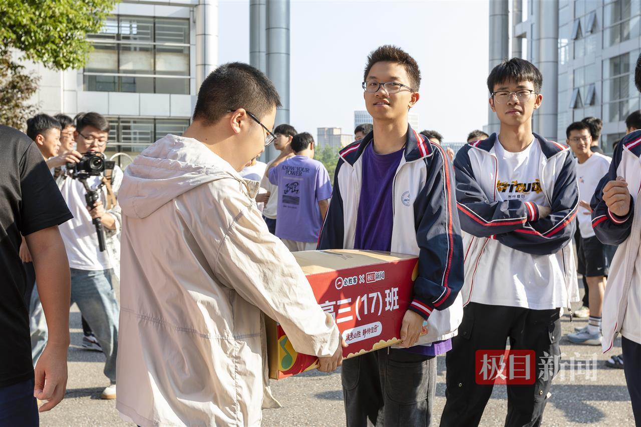 2025年5月29日,2025高考冲刺阶段,华中师范大学第一附属中学的校园内洋溢着紧张而热烈的氛围。极目新闻携手必胜客“逢考必胜静待佳音”公益行动,为该校近千名高三师生送上寓意“必胜”的定制餐点,用美食与祝福为考生加油打气。活动现场,师生们相互鼓劲“高考必胜”,共同见证这场充满温情的助考仪式。