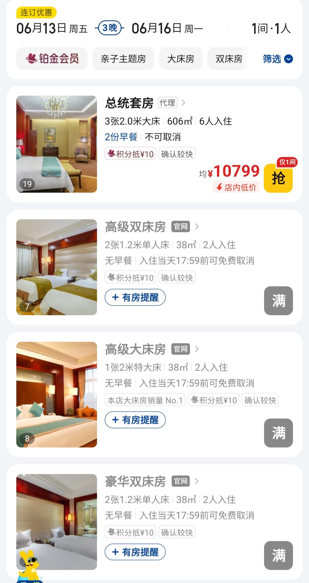 记者走访发现,合肥一中、合肥八中周边酒店“高考房”预订并不存在“一房难求”的现象。合肥八中附近某高端酒店工作人员介绍,6月6日-9日连住3天的“高考房”目前仅双床房被订完,但行政大床房及套房还有余量,“大家关注的万元总统套房,全酒店仅有1间,日常定价即过万元,并不是因高考期间才有的定价,目前暂无人预订。”