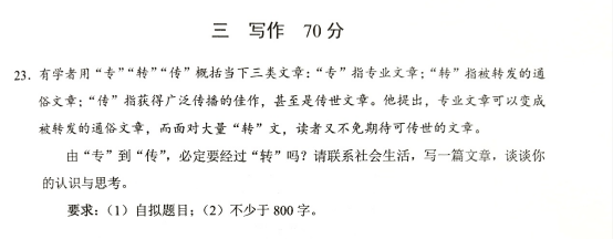 王宏图告诉澎湃新闻记者,考生还有一个写作思路是,转化的文章有一个最大的问题,一方面它方便了读者的接受,但毕竟是转手的,会把原作当中很精美的含义过滤掉。古今中外很多传世之作都是没有被转过的,而且转文最多也就是一个介绍性的入门引导,它无法取代原作给读者在精神上的滋养与享受。“不排斥转文,但我们可以把它当做入门的拐杖,尽量读原作。”