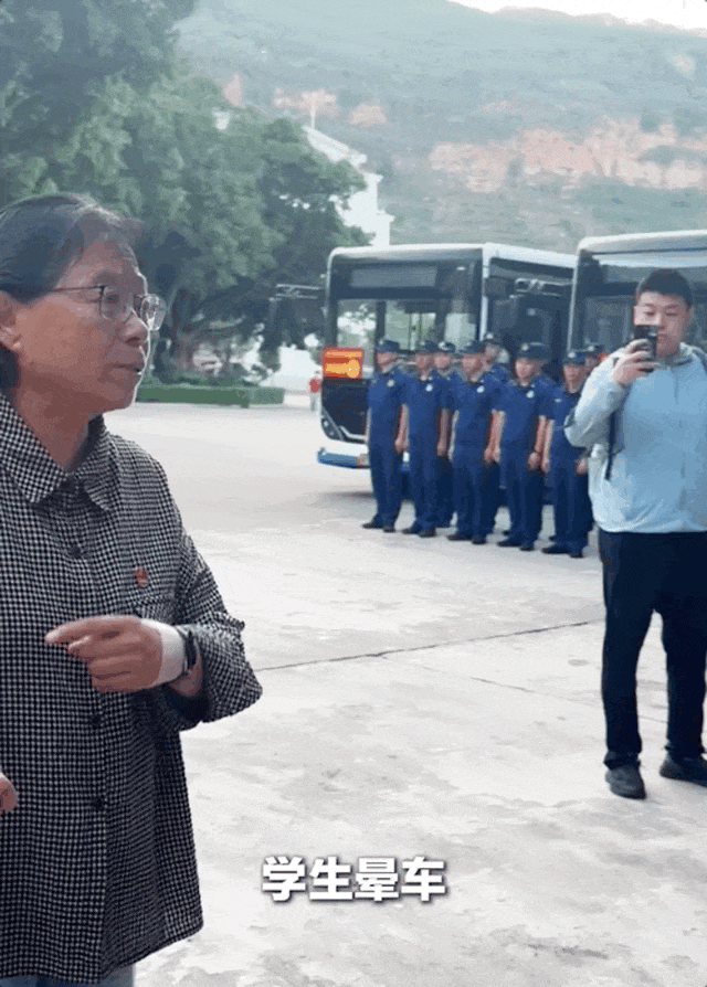 一名考生因晕车无法乘坐大巴前往考场,张桂梅与学校老师请求民警帮助。