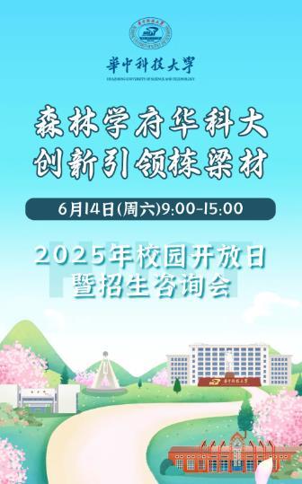 森林学府华科大,创新引领领栋梁材!6月14日,华中科技大学2025年校园开放日暨招生咨询会将在该校举行,活动现场将举行招生咨询会,介绍招生政策和重点学科建设,并同步举行数字影像展。