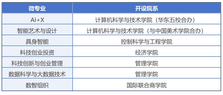全面迭代升级“AI+X”微专业。面向非人工智能等相关专业在校、在籍非应届,具备一定数理基础,对人工智能感兴趣的本科生,由浙江大学等华东五校教师以及国内外人工智能头部科技企业的专家联合授课,完成相应课程修读且通过考核可获得华东五校共同签章的“AI+X”微专业证书。
