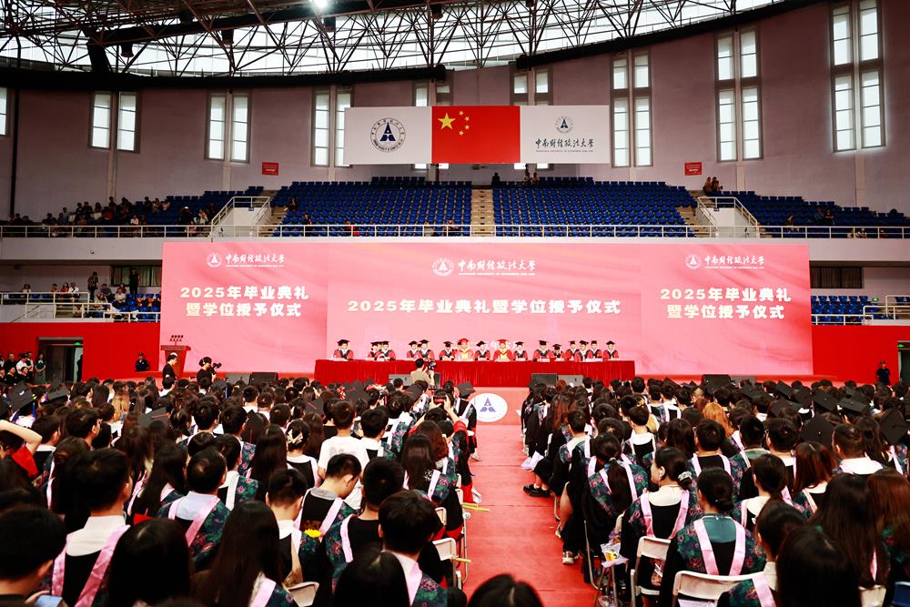 6月19日,中南财经政法大学2025年毕业典礼暨学位授予仪式在南湖校区艺体中心举行。全体在校校领导,校学位评定委员会委员,各学院及相关职能部门负责人,教师代表,毕业生代表,校友代表,家长代表等齐聚一堂,祝福2025届7945名学子圆满完成学业,开启人生新征程。
