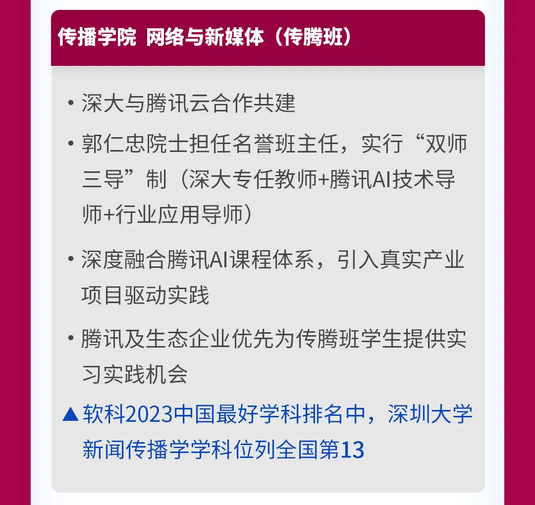 深大x腾讯,共建全国首个传媒腾班:“AI+新文科”,院士领衔,双师三导联合培养!➠