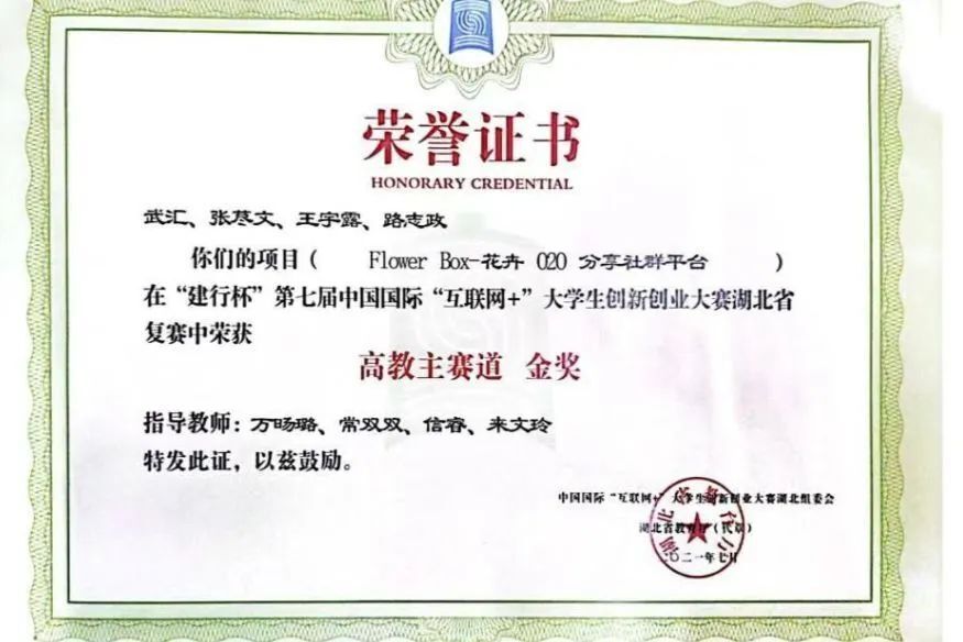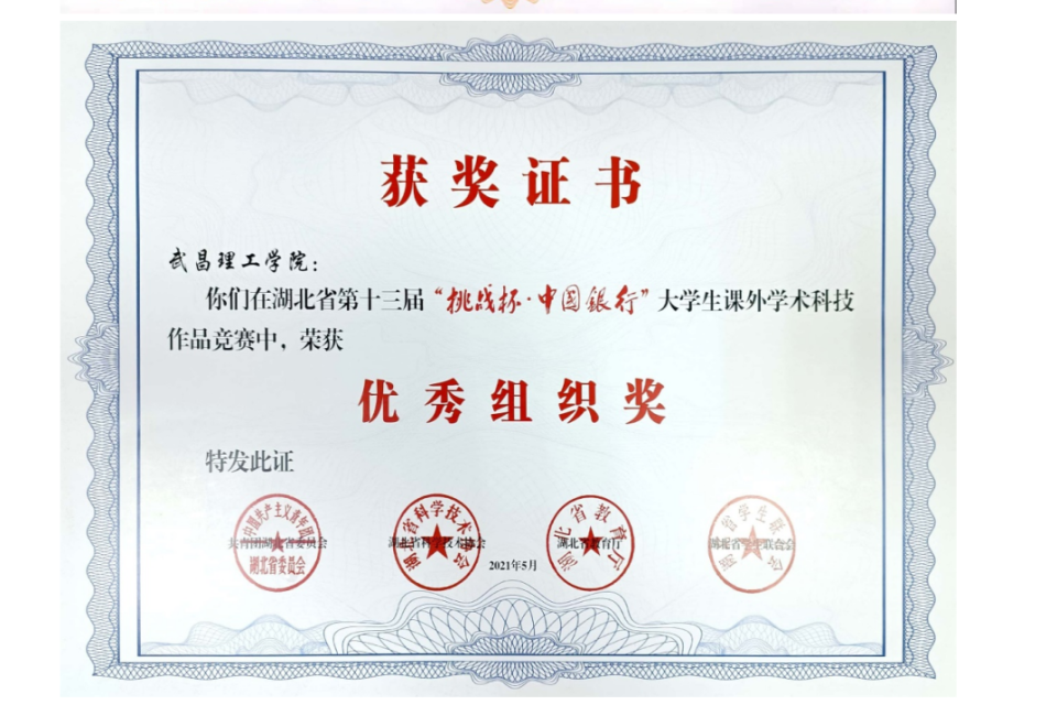 曾获湖北省第十三届“挑战杯”