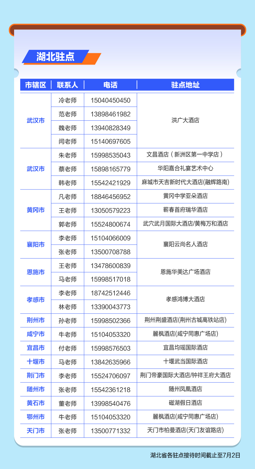 学校在武汉市、黄冈市、襄阳市、恩施市、孝感市、荆州市、咸宁市、宜昌市、十堰市、荆门市、随州市、黄石市、鄂州市、天门市均有驻点老师,考生和家长可详细查看下图。考生和家长也可以咨询电话:冷老师15040450450(微信同号),范老师13898461982(微信同号)。