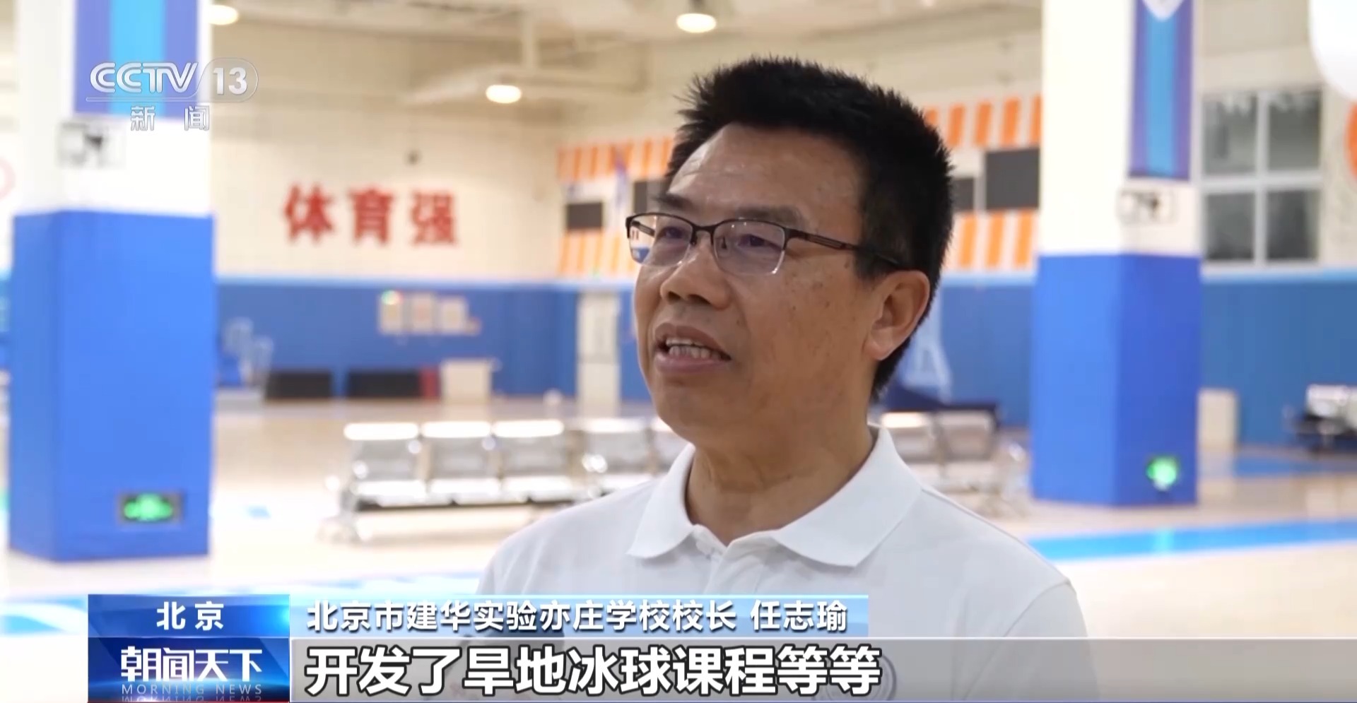 北京市建华实验亦庄学校校长任志瑜:比如说小学将篮球,足球,排球三大球等拉入了必修模块,中学部结合冰雪运动,开发了旱地冰球课程等。