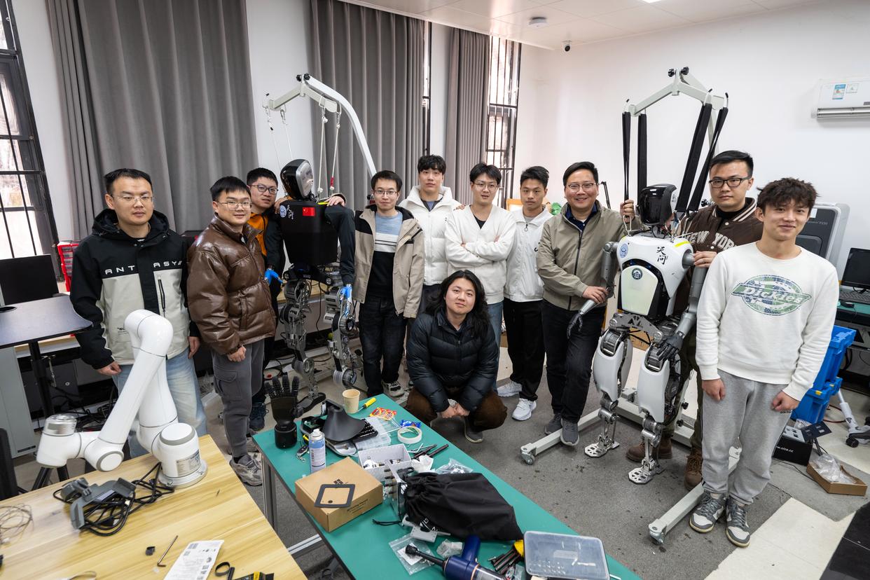 3月19日,研发团队在武汉大学机器人学习算法与软操作实验室内合影。新华社记者 肖艺九 摄