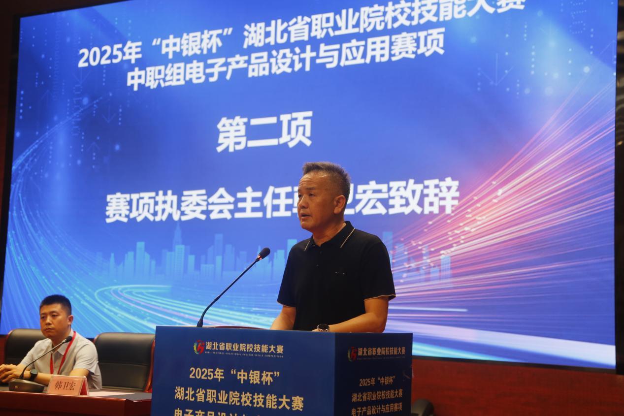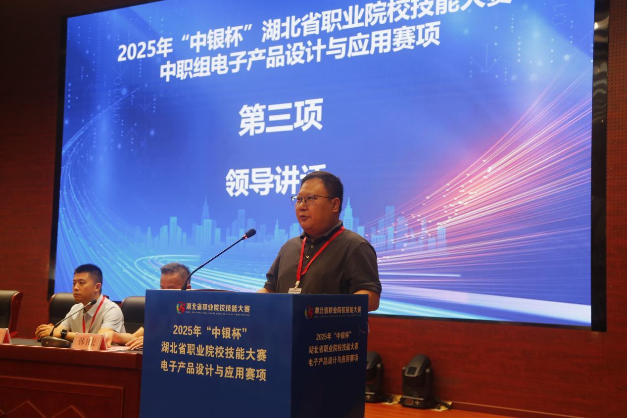 本次大赛由湖北省教育厅主办,湖北省教育科学研究院承办,武汉市仪表电子学校协办,通过实战竞技全面展示中职学生在电子产品设计、组装调试、软件编程等领域的专业技能,并为湖北省参加全国职业院校技能大赛选拔优秀人才。赛项执委会主任、武汉市仪表电子学校党委书记韩卫宏在开幕式上通报了赛事安排,强调本次赛事严格遵循“以赛促学、以赛促教、以赛促改、以赛促建”的核心理念,聚焦电子产品设计、组装调试、软件编程等核心技能考核,全面检验中职学生的专业技能水平和团队协作能力。按照相关承办的规范和标准进行,成立了赛项执委会,设置了十个职能小组,确保各参赛队有专人对接、各个场所有专人服务、各项工作有专人负责。通过赛前场地观摩、赛中实时直播、全程监控录像三重保障机制,打造公开公平公正的竞赛环境。希望选手们发扬“奋勇拼搏、精益求精”的工匠精神,展现新时代中职学生的专业素养与青春风采。