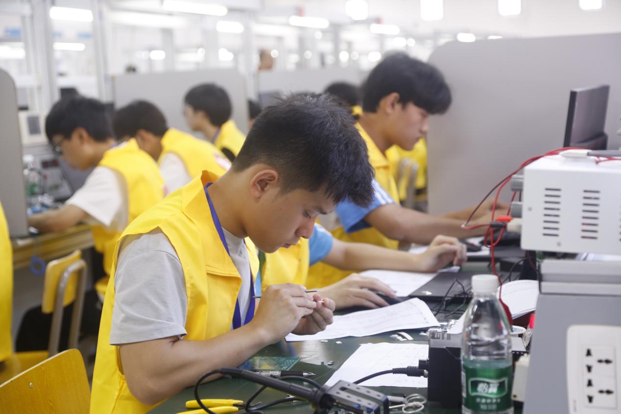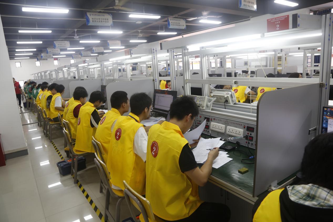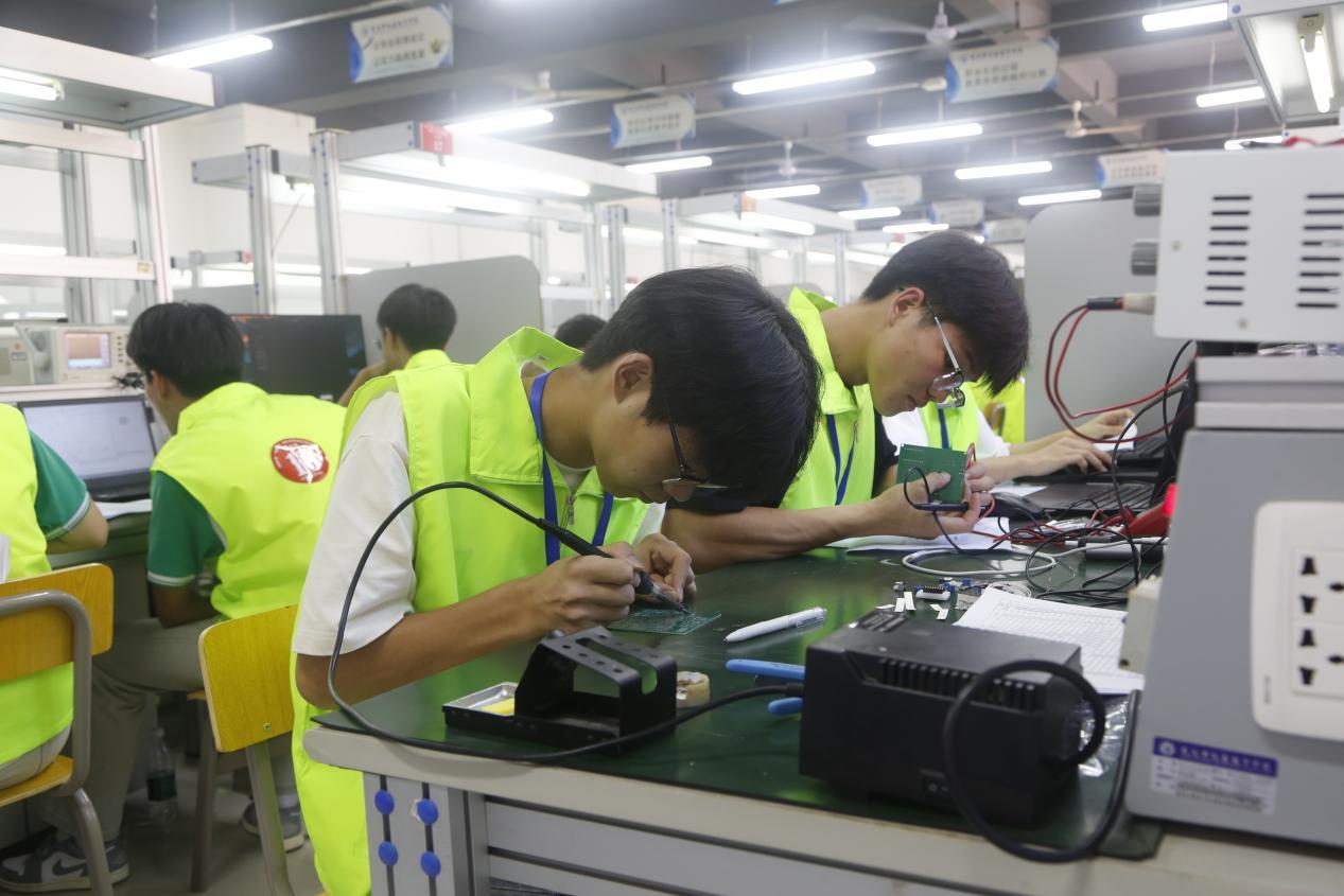 比赛期间,参赛选手按照竞赛试题要求,完成电路设计、PCB绘制、电路板安装与调试、硬件故障诊断及维修、程序设计等几个方面的任务,一个个精细的动作展示出了选手们娴熟的技能、过硬的功底和良好的精神面貌,展示了自己在电子产品设计与应用方面的扎实功底和创新能力。