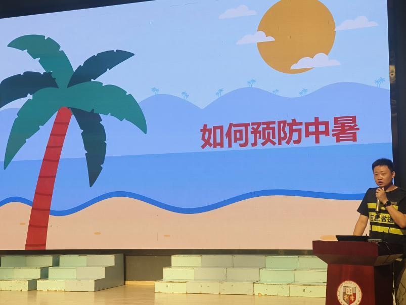 中暑、溺水、毒蛇叮咬……应急办人员张博制作了精美的PPT,为学生们带来生命安全防护知识讲解,列举出常见的夏季安全隐患,并逐一介绍预防及应对措施。活动尾声,烟雾四起,学生们按照指令,低头捂鼻有序从安全出口撤离,顺利完成安全演习。