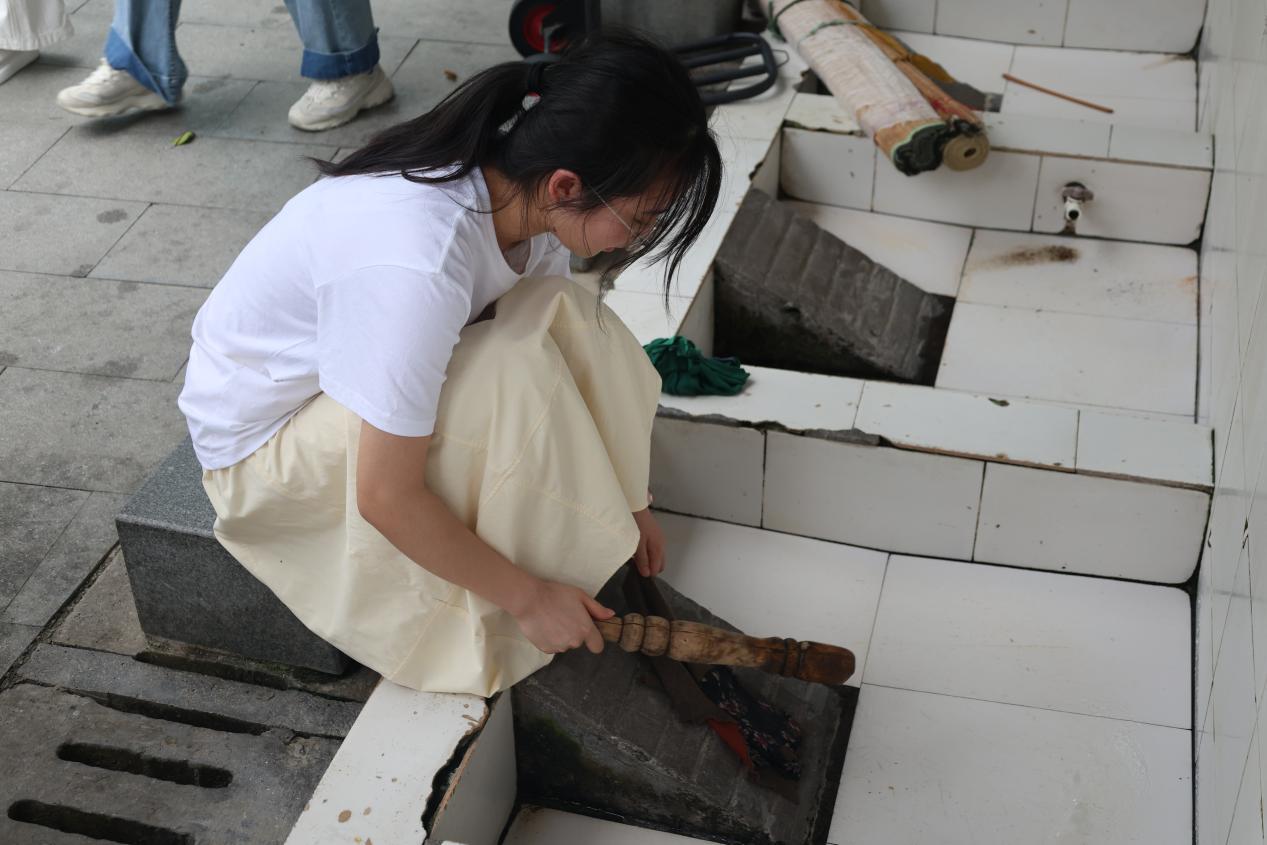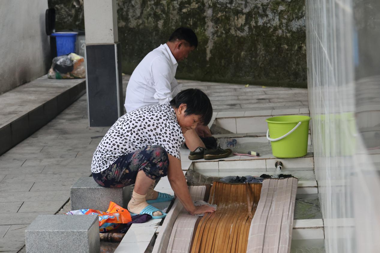 “这是我们村特设的便民洗衣池,免费供村民们使用。”许家冲村的村干部向大家介绍道。只见屋檐下整齐排列着青石板洗衣池,几位村民正在一边洗衣一边唠家常,棒槌捶打衣物的“咚咚”声此起彼伏,湖北大学的同学们也拿起棒槌体验传统洗衣方式。“洗衣池建好后,大家洗衣服方便多了,还不用花一分钱,又能让乡亲们聚在一起聊聊天。”正在洗凉席的阿姨笑着说。“既保留传统生活方式,又避免洗衣污水直排长江,这个设计太巧妙了!”湖北大学学生汪灿灿赞叹道。