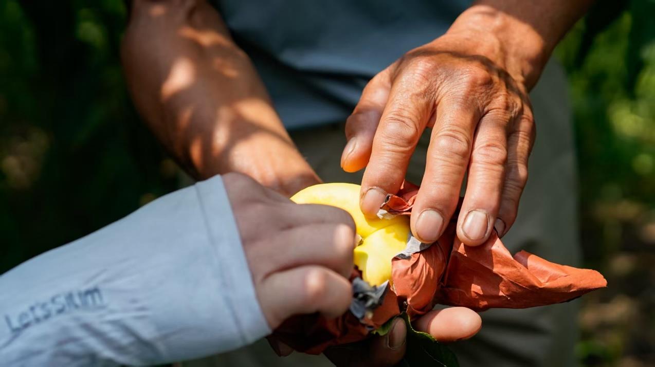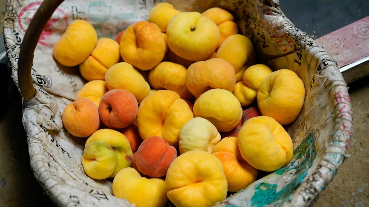 “你们看,这红桃和黄桃其实是一个品种,关键就在这纸袋上。”夏师傅随手摘下一个套袋的油蟠桃,边拆边解释,“套上袋子不见光,长出来就是黄油蟠;不套袋的太阳直照,就成了红油蟠。”他笑着补充,“枣阳水土好,汉江水养出来的桃子格外甜,你们待会儿尝尝就知道了!”