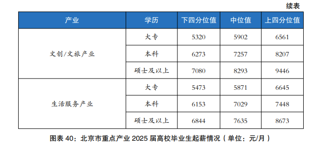 此外,2025年北京预计有29.4万名高校毕业生,同比增加6200名。从就业岗位类型看,技术研发/专业技能类、业务类、支持类、销售类岗位2025届高校毕业生起薪中位值分别为8357元/月、7115元/月、6630元/月和6280元/月。