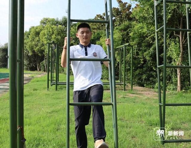 旋梯训练中的吴轩哲。潮新闻记者 沈立 摄