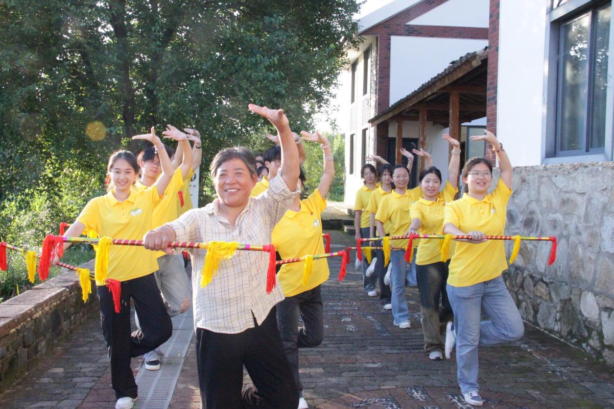 该校实践队带队老师盛蕾介绍,本次活动创新实行“双向教学”的模式,一方面鼓励年轻人在竹竿击地的铿锵中汲取乡土滋养,让“打莲湘”的古老技艺在大学生手中焕发生机,另一方面发挥大学生专业特长,通过专业设计的书法、扎染、陶埙等课程,帮助乡村儿童感受传统文化魅力。“希望这种‘教’与‘学’的深度互动,能实现双向奔赴的文化交融,共同推动非物质文化遗产的保护与传承。”她说道。