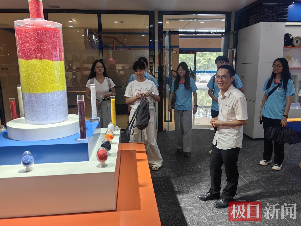 在顺威科技园杏坛基地,实践团探秘了绿色制造如何为健康产业筑基。厂长助理周志锋带领实践团参观基地展厅、实验室和生产车间,领略科技赋能下的产业生产,周厂助表示:“看到这么多青春力量,对未来科技的发展充满信心,希望同学们能将所学所悟运用于实践,为科技发展、智慧生活助力。”