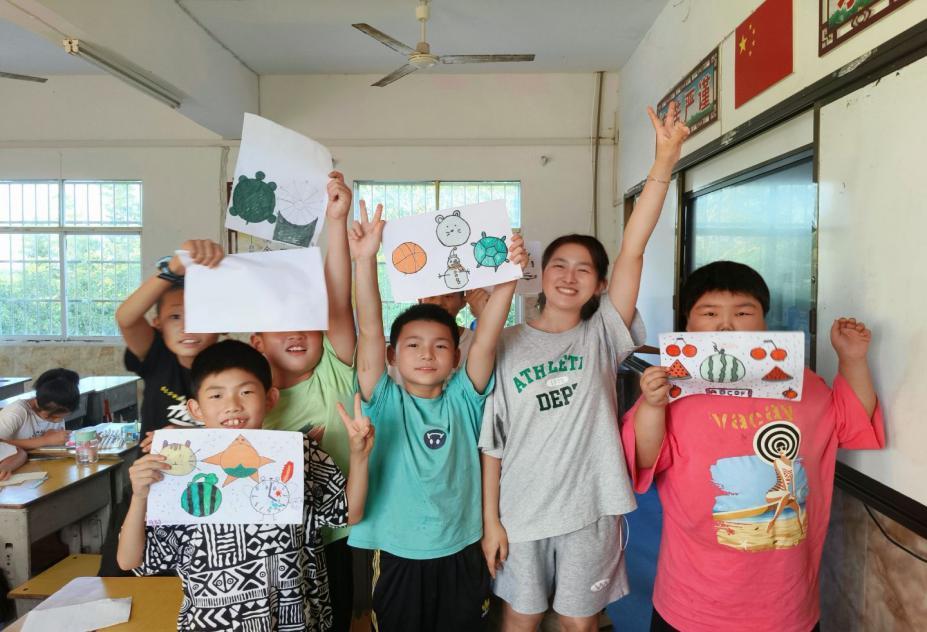 绘画课上,胡甜鼓励孩子自由表达,从不设定标准答案,任由孩子们用斑斓色彩在纸上晕染心绪。翁子晗则将数学知识与乡村生活场景相结合,引导孩子们用肢体感知锐角的锋芒、直角的方正。当孩子们指着教室门框兴奋地喊出“这是直角”时,抽象的知识瞬间被赋予了生活的温度。“我们想把对知识的热爱播撒在大山,让观察与思辨的种子在湖北的土壤中萌芽。”胡甜望着孩子们专注而明亮的眼睛说。