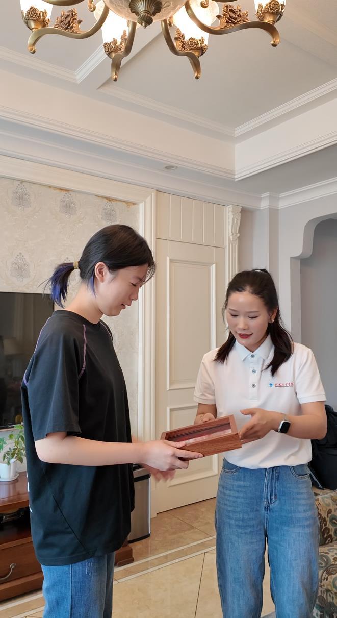 极目新闻记者现场看到,学校除了送来录取通知书,还带来了学院师生亲手制作的传统剪纸等文创纪念品,并现场向贺显贻详细介绍了该校师资力量、教管模式、赛事成果等办学育人情况。