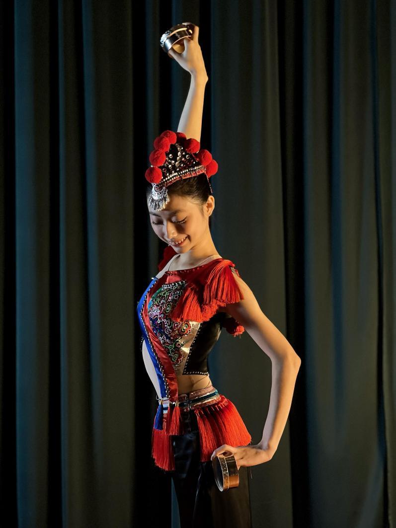 拉丁舞重爆发,中国舞重韵味,两种发力方式截然不同。刚转舞种时,何音璇常因习惯拉丁舞发力而做不好动作。于是,她跟着学校舞蹈专业老师李娜重新学发力,练基本功,“李娜老师会用精准通俗的语言和动作示范,一点点帮我们抠细节,抬手角度、转身力度都讲得很仔细。”她对着镜子一遍遍调整,逐步适应了新舞种。