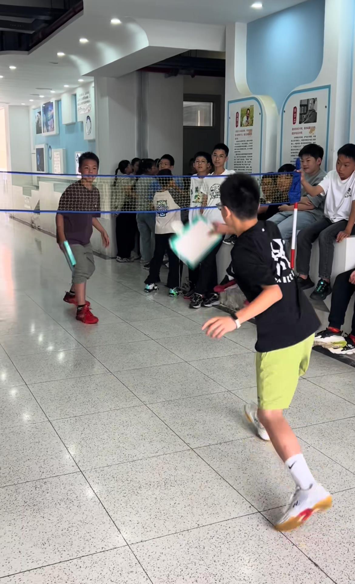 慢慢地,连其他班级的学生也参与其中,还出现了跨班级比赛。“一般两个班各派出4名同学进行切磋,一共打四场,大家都特别开心。”李宇成说,“简单的羽毛球赛,让这片走廊成了课间最热闹的地方。”