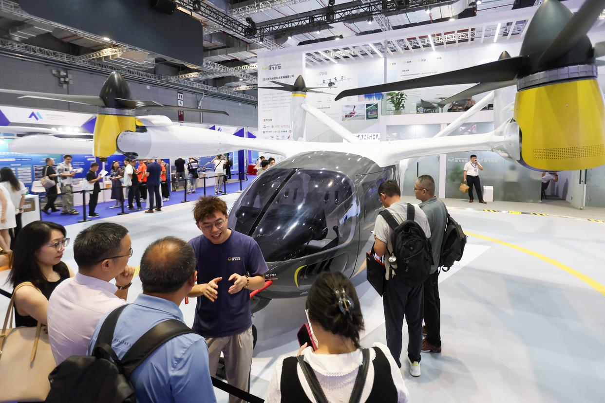 7月23日,人们在博览会沃飞长空展区了解产品情况。新华社记者 王翔 摄