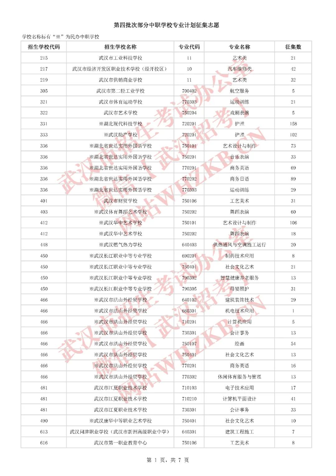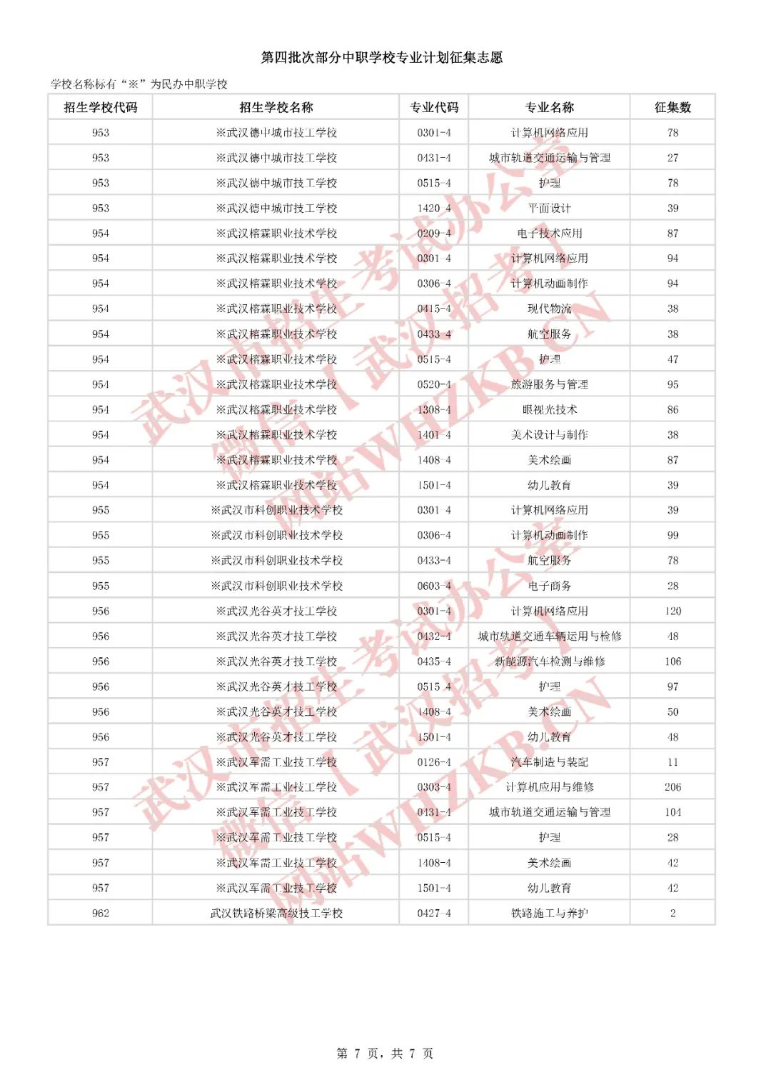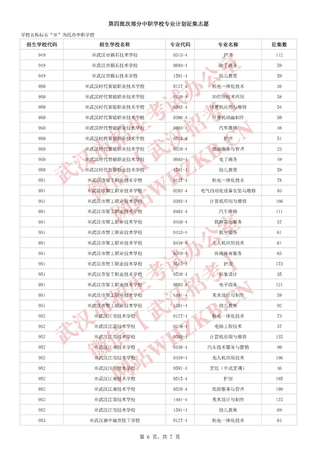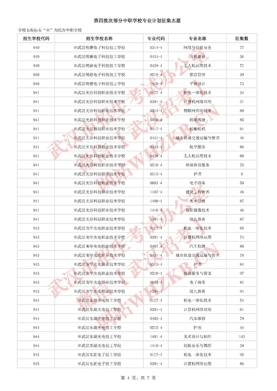 根据《市教育局关于做好2025年高中阶段学校招生考试工作的通知》(武教办【2025】2号)文件精神,对未完成招生计划的第四批次中职学校进行志愿征集。