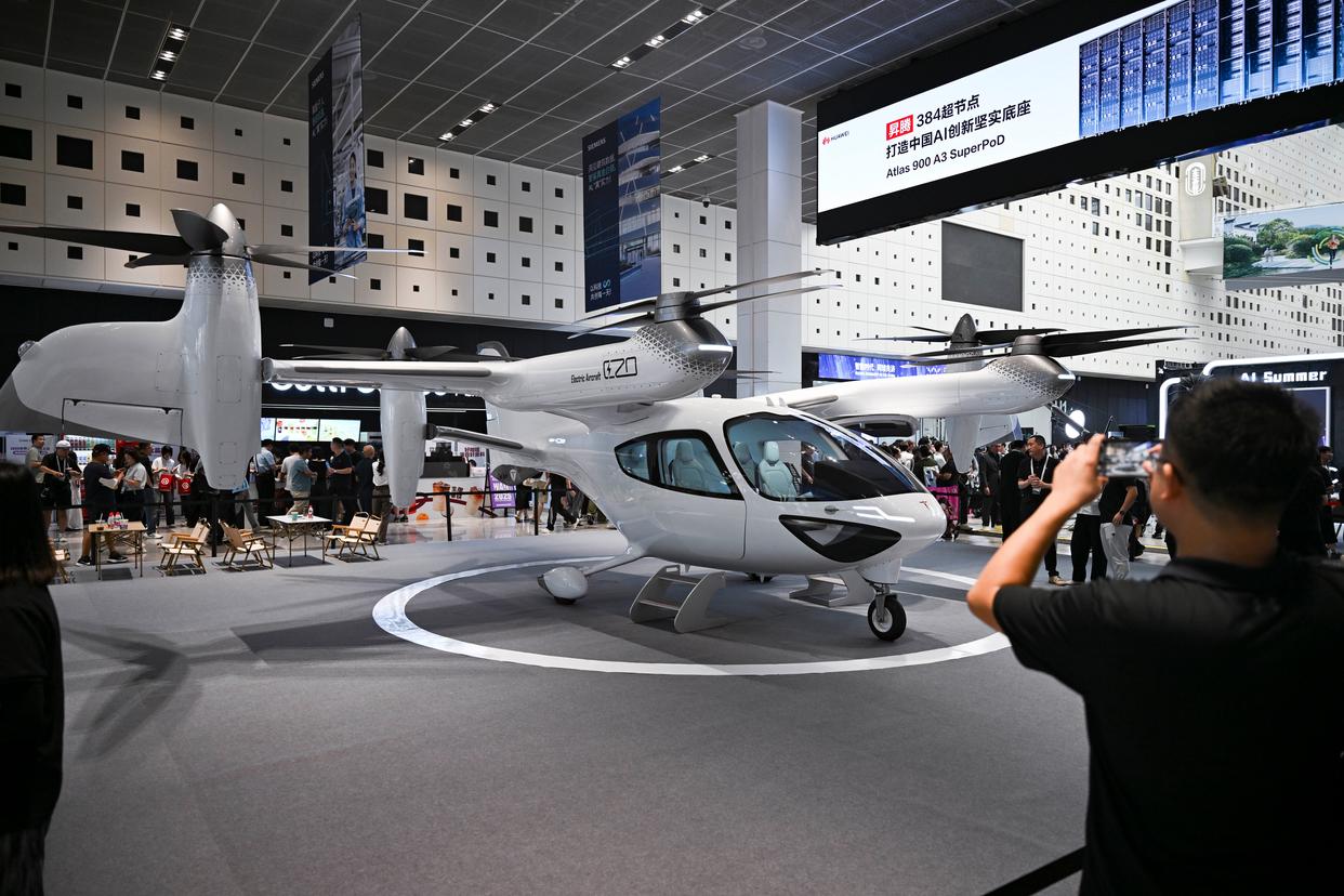 这是7月26日在2025世界人工智能大会拍摄的时的科技电动垂直起降飞行器。据工作人员介绍,该产品具备智能驾驶功能。新华社记者 陈浩明 摄
