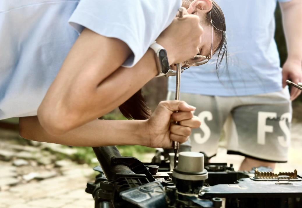 随后,实践团成员在专业人员的指导下,进行无人机简单拆机操作。螺丝刀在手心里旋转,成员们探寻无人机内部结构的奥秘,对农机设计与功能的理解越发清晰。从动力系统到传感器,从信号传输到机械传动,实践让抽象的理论知识转化为可触摸的技术图谱。