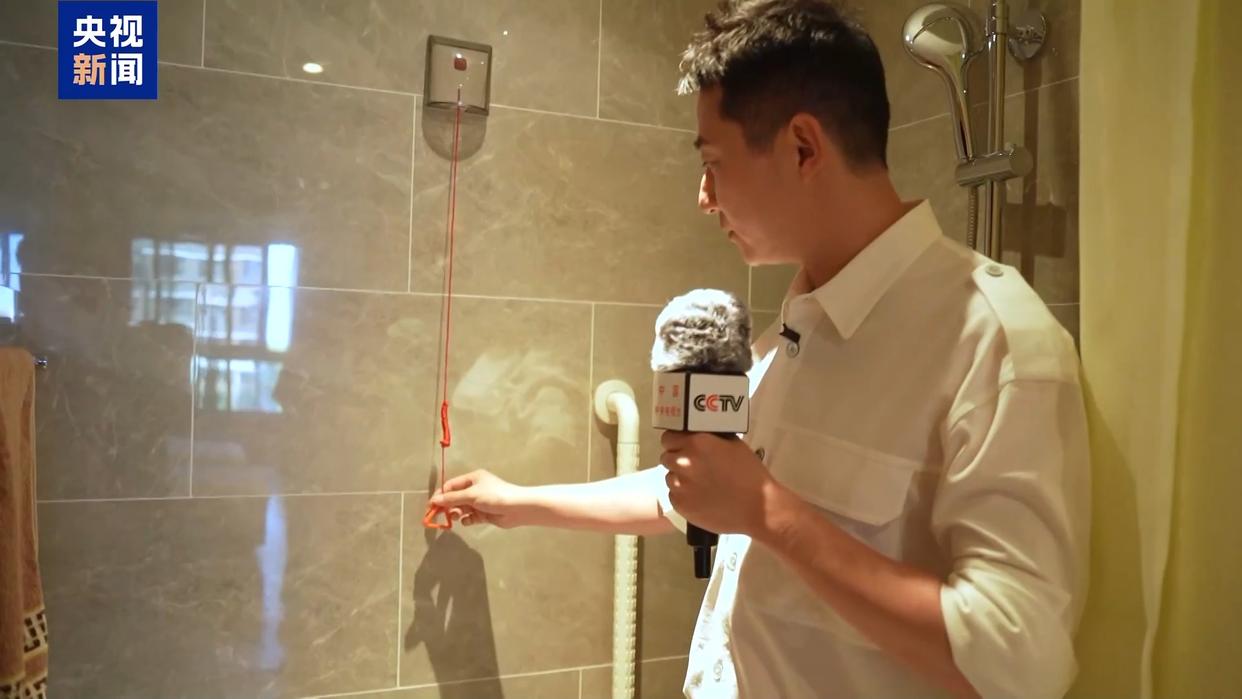 在这所养老机构,除了现在很忙的“洋洋”之外,还有一些“黑科技”。在居家的状态当中,老人在如厕和淋浴时,有滑倒的可能。因此,这里的浴室,进行了专门的设施加装。