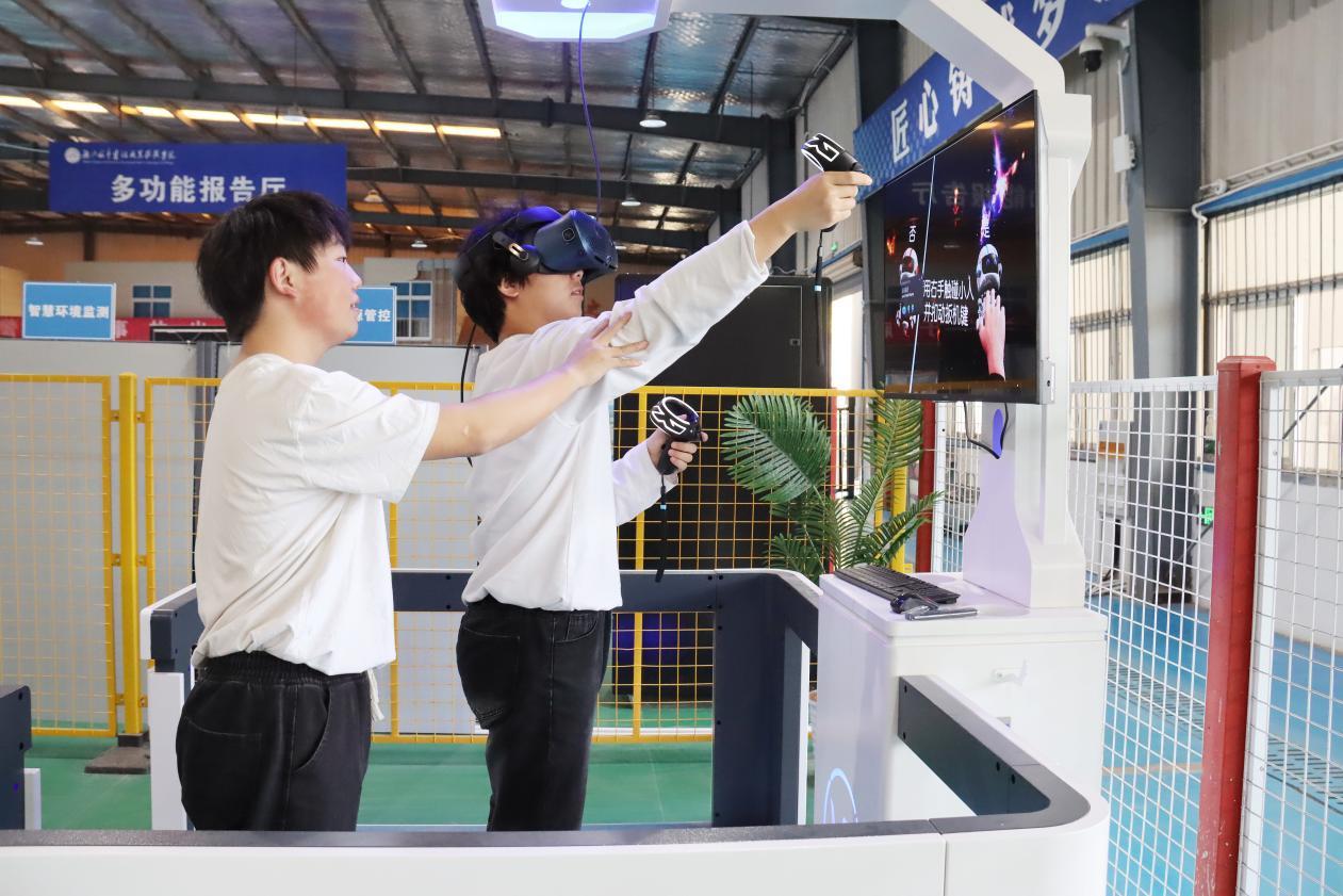 学生佩戴VR设备在数字孪生工地“穿梭”