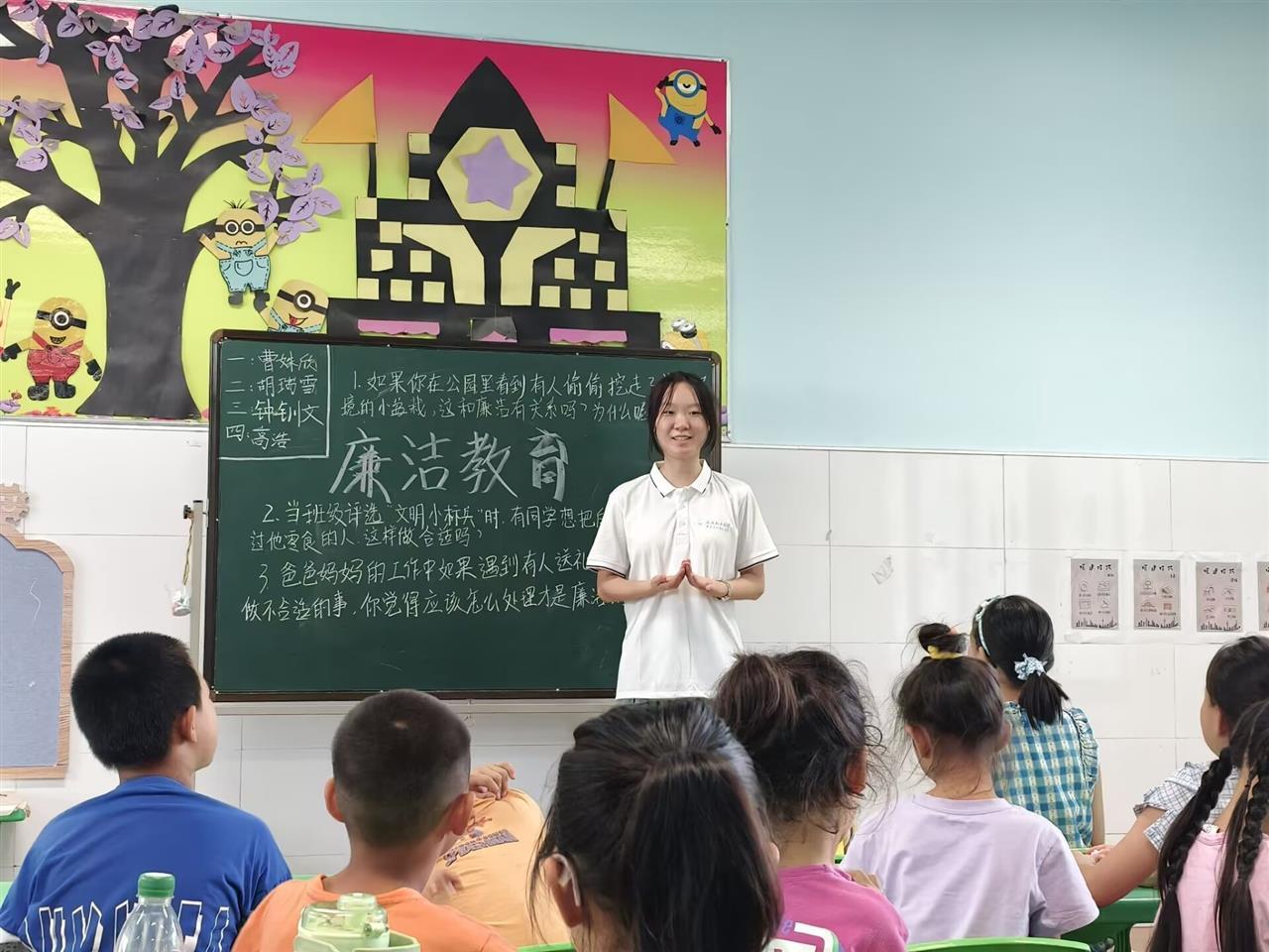7月25日,武汉轻工大学“清莲”AI赋能辅导员工作室赴襄阳市老河口市王府洲社区暑期托管班,开展了廉洁教育主题活动,将廉洁文化融入校园的点点滴滴,引导小朋友在日常生活中践行廉洁精神。