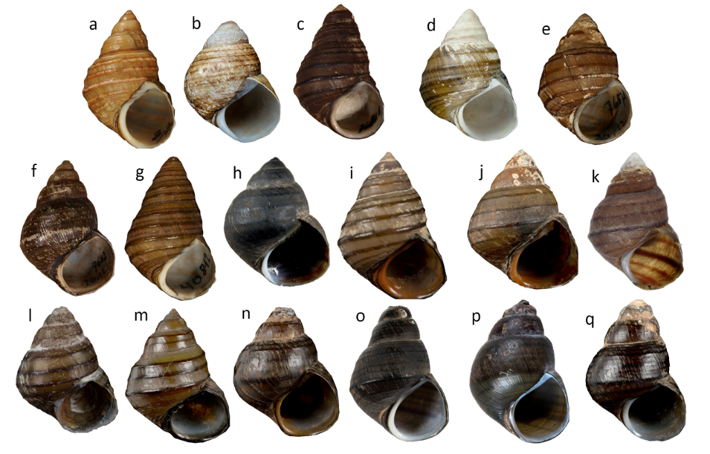 越田螺属的17个物种,其中h到q为10个新种。(中国科学院昆明动物研究所供图)