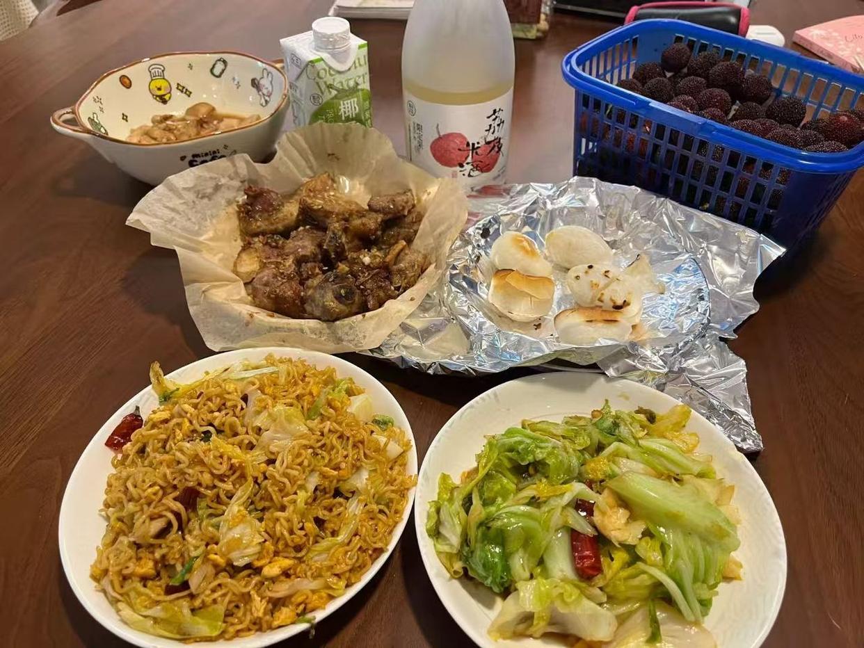 “前一天晚上刷到了美食博主的做饭视频,特别馋,第二天就想着自己做,但是因为早上实在起不来,我先跟妈妈说好了,让她帮我买菜回来,我来做。”小陈妈妈准备好原料后,当天晚上小陈在厨房忙前忙后,最后总算做出了三菜一汤:蒜蓉排骨、干锅包菜、炒面,再加上一大锅莲藕玉米排骨汤。