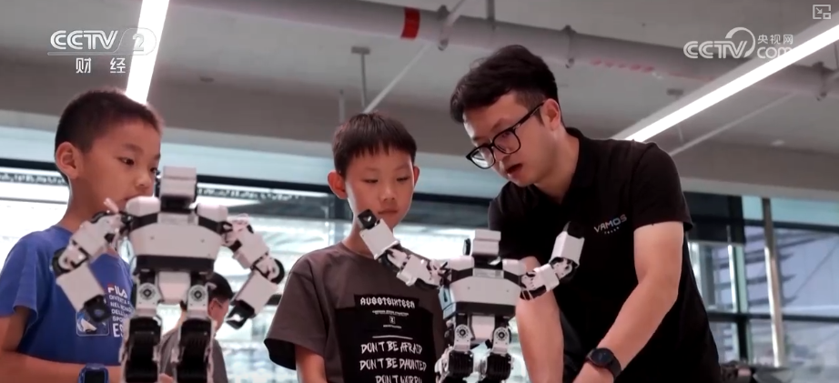 某研学机构运营部负责人杨坤刚介绍,最受欢迎的是人工智能主题课程,一经推出三五天就已经报满。他们也引进了一些智能机器人,包括宇树的机器人、天工的人形机器人。广东深圳:暑期公益科技课火爆青少年乐享前沿体验
