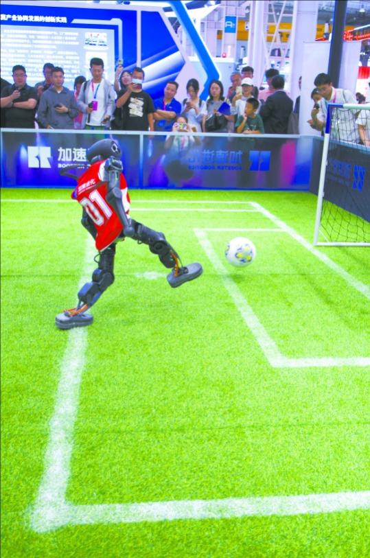 宇树科技的G1格斗机器人与全新发布的R1人形机器人在本届大会上联袂登场,G1格斗机器人依靠先进的动态平衡算法,迅猛的出拳、凌厉的高踢腿等高难度动作一气呵成,展现出接近人类的运动协调性。另一家机器人企业“加速进化”带来的是刚在2025 RoboCup 巴西机器人足球世界杯上夺冠的加速T1、K1两款机器人,该公司还搭建了一个小型足球场,让参观者直观感受机器人竞技的独特魅力。