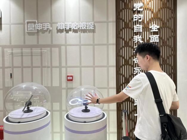 团队成员在云梦县博物馆体验触摸互动装置 屈紫夕摄