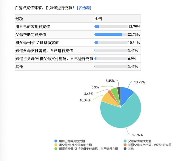 当调查到如何进行充值时,52.69%的受访家长表示自己曾给孩子充值游戏;根据学生版的调查问卷,82.76%的受访未成年人表示,在父母帮助下完成充值。记者采访中发现,不少家长将玩网络游戏和给孩子充值游戏作为一种奖励。