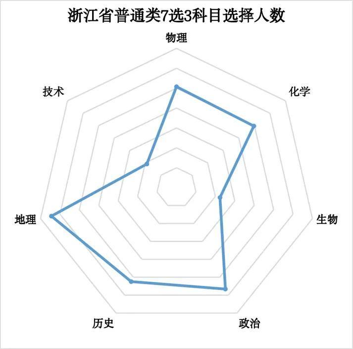 绍兴文理学院公布了浙江省普通类7选3科目选择人数,其中地理、政治选择的新生最多。