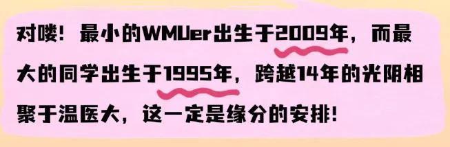 2007年出生的小萌新是今年的新生“主力军”,而在温州医科大学,最小的新生出生于2009年,最大的新生出生于1995年,跨越14年的光阴相聚在温医大,成为“最萌年龄差”。