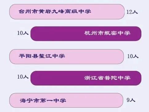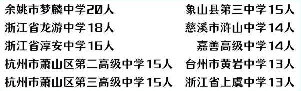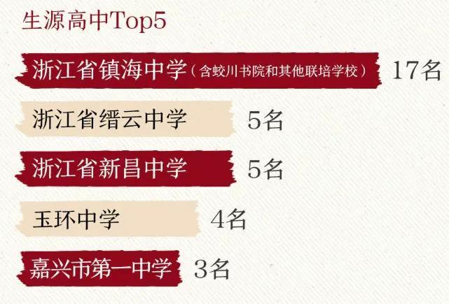 其中,浙江省镇海中学(含蛟川书院和其他联培学校)共输送了17位学生,位列录取人数第一,浙江省缙云中学、浙江省新昌中学分别输送了5位学生,位列第二。