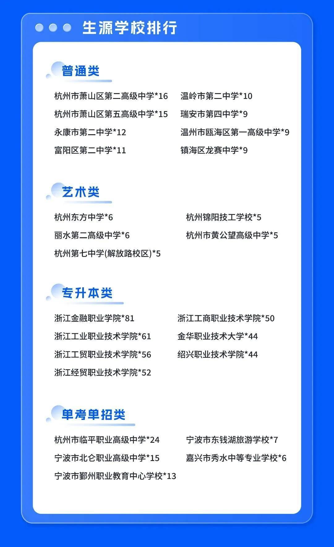 生源榜上,浙江临海市回浦中学、富阳区第二中学、浙江省学军中学海创园学校位列前三。